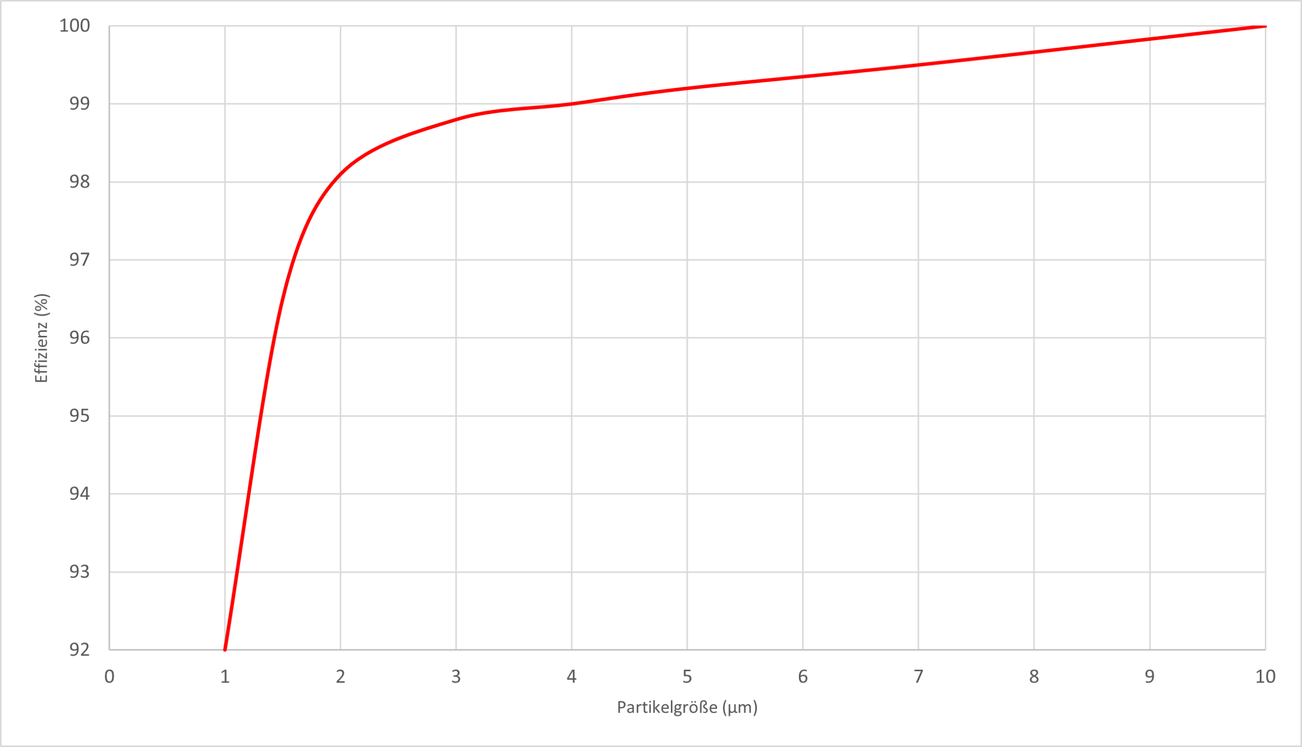 Abbildung 1: Effizienz des Filtervorgangs mit MEDMF in Abhängigkeit von der Partikelgröße
