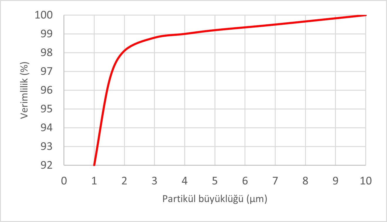 Şekil 1: MEDMF ile yapılan filtreleme işleminin partikül boyutuna göre verimlil­iği